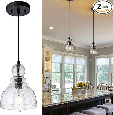 Glass pendant lights for kitchen island.